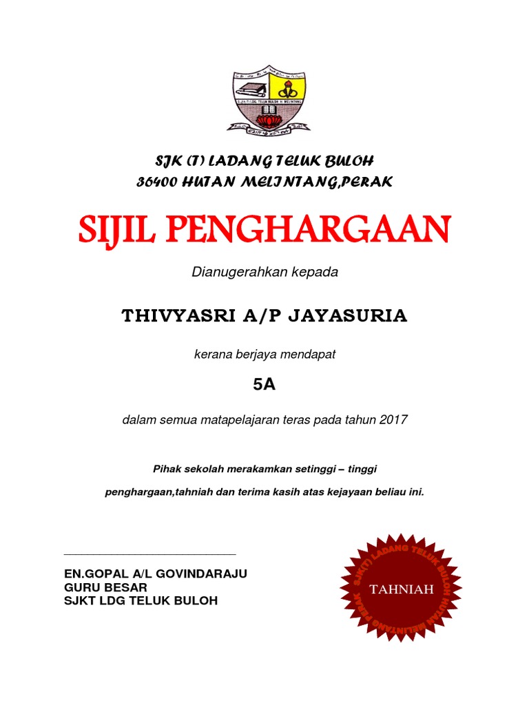 Contoh Sijil Pencapaian Kedudukan Pdf
